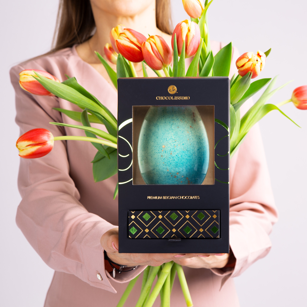 Pâques est le moment idéal pour offrir à vos proches quelque chose de vraiment spécial. Notre œuf de Pâques fabriqué à la main, réalisé à partir de chocolat blanc belge de la plus haute qualité et décoré d’un motif bleu et or, est une combinaison d’élégance, de goût raffiné et de tradition festive. Le chocolat blanc belge délicat et velouté, associé à de subtiles décorations, fait de cet œuf non seulement une gourmandise exquise, mais aussi un véritable plaisir pour les yeux. C’est une décoration exceptionnelle pour la table de Pâques et une excellente idée de cadeau – aussi bien pour vos proches que comme présent d’affaires.